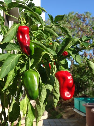 家庭菜園のピーマンが赤くなりました。夏場の高温が原因のようです。 |