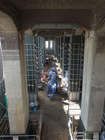 耐震補強工事が進む神戸−元町間のJR高架です。 |
