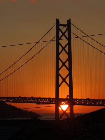 ふと窓の外を見ると、太陽が明石海峡大橋の向こう側に沈んでいくところでした。 |